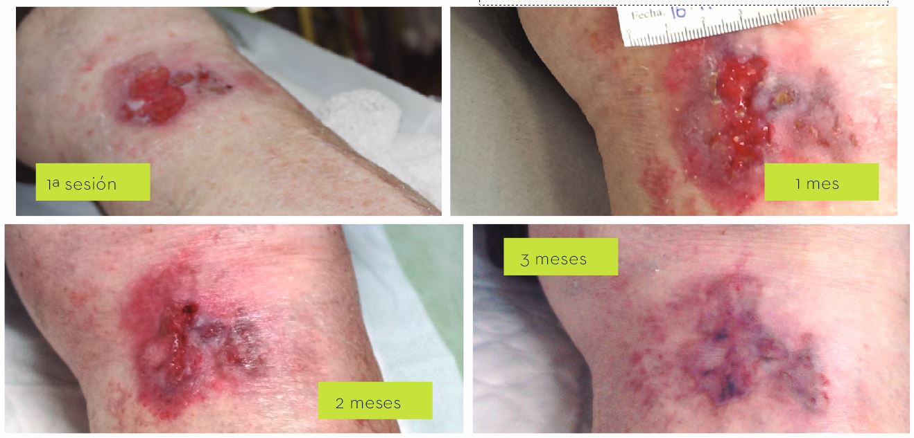 Cicatrización definitiva de las úlceras no infectadas en la última fase de granulación, así como heridas estancadas y así conseguir la recuperación de la calidad de vida de los pacientes.