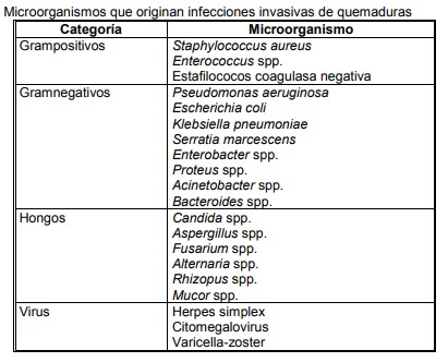 En los pacientes quemados, la región por debajo de la escara puede infiltrarse con abundantes microorganismos y actuar como foco para una bacteriemia posterior, que suele ser una complicación mortal.